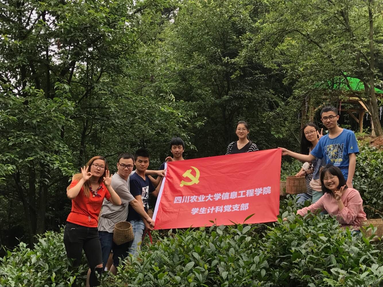 学生计科党支部为举行一场校内宣传募捐活动以筹集善款帮助山区儿童,为了将茶叶作为奖品赠送给捐款的爱心人士,2017年6月23日,支部预备党员欧甜同志组织并召集支部的入党积极分子,一行共八人踏上了蒙顶山采茶公益之行。