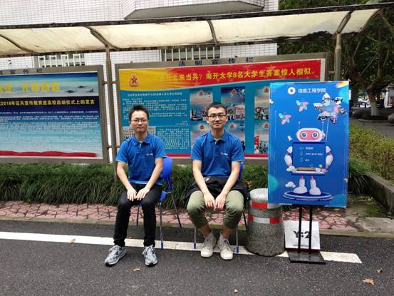 在迎新期间,二区食堂、校医院的一个小小角落里,有个固定的服务点,信工院党员志愿者会在服务点给新生指路、送水、寄存行李,为需要帮助的他们做些力所能及的事。“在这里帮助来来往往的新同学,使当初刚来学校的懵懂之感油然而生;许多家长新生向我们寻求帮助的时候,我为我所能提供的帮助感到很开心,我认为我在做一件很有意义的事情。”党员李攀峰说道。