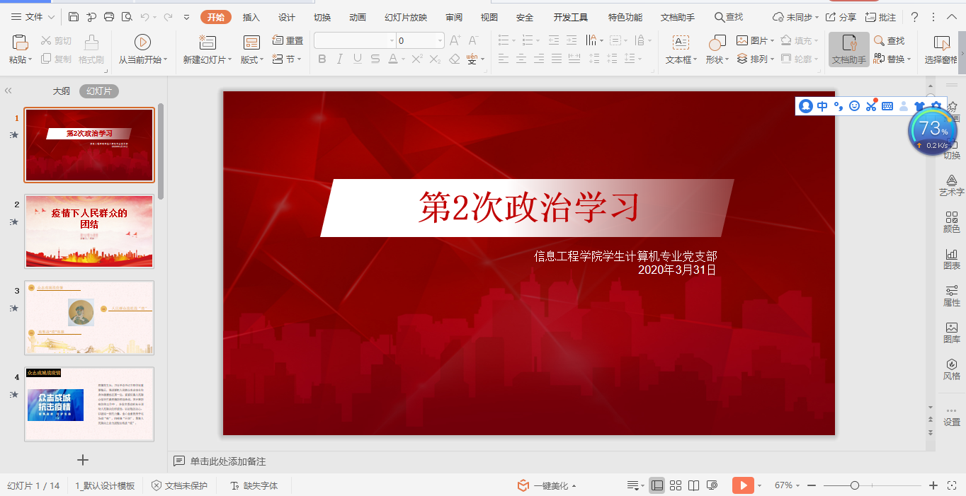 这次学习分享会不仅让大家看到了这次疫情之下人民群众的众志成城、万众一心,还有在全球战“疫”中中国的大国担当。让党员、预备党员深刻地感受到并积极发挥先锋模范作用。【文/周婷 图/周婷审/尹华祺】