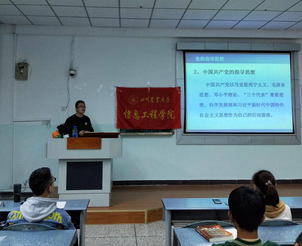 10月9日下午,必赢565net官网入党积极分子培训班第三次专题培训在十教A201举行,信息工程院院党委办公室主任黄锎靓老师就《中国共产党的指导思想》等内容进行专题讲解,必赢565net官网2020年全体入党积极分子参加本次培训。