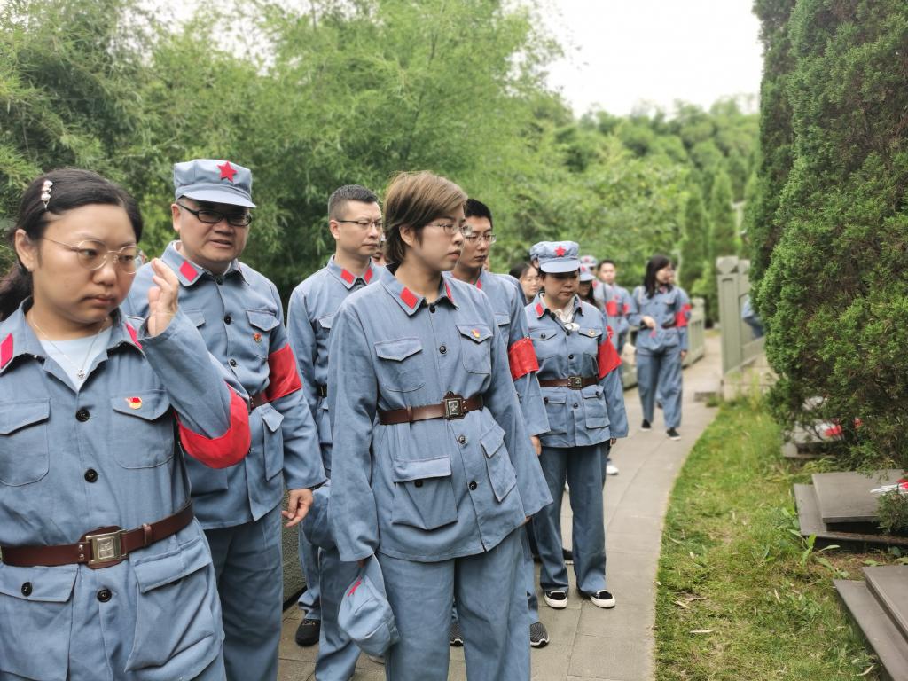 穿上红军服,缅怀革命烈士。7月3日,学院党委组织全体教职员工前往蒲江县西来镇铜鼓村成都战役纪念馆开展“缅怀革命先烈,传承红色基因”党史学习教育主题党日活动。全体教职工身着红军服,跟随讲解员先后瞻仰参观了成都战役烈士陵园和纪念馆。烈士陵园内绿荫满园、安静庄严,同志们从一块块墓碑前走过,聆听革命烈士英雄事迹,在山顶伫立的纪念碑前肃立默哀,围着纪念碑缓步绕行,向革命烈士表达崇高的敬意和深切的缅怀之情。