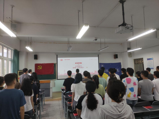 整个会场红旗飘扬,气氛严肃热烈。在全体成员齐唱国歌的歌声中,开班仪式拉开帷幕。党委办公室主任陈明滟首先对参加活动的嘉宾以及本期党校的基本情况做了介绍,随后党建办负责人王宇博同学宣读了党校纪律,上期优秀学员黄凌峰同学以及本期学员代表李思灼同学分别针对党校培训学习发表自己的感想。最后,党委书记王中成讲话中谈到本期党校培训包含六次专题学习以及相关的实践学习,希望学员们积极学习党的相关理论和知识,用行动向党组织靠拢,并祝愿同学们能够顺利结业,早日争取加入中国共产党,成为一名合格的党员。并勉励在场广大同学要积极上进、展望未来,要坚定前进信心,立大志、明大德、成大才、担大任,努力成为堪当民族复兴大任的时代新人