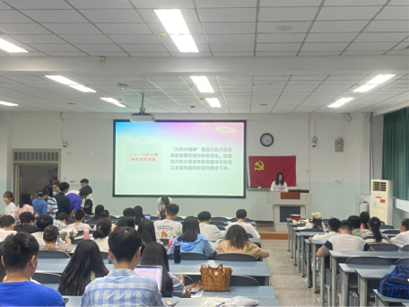 会上张茜连同学从川农大精神的孕育与养成和川农大精神的内涵与精髓两个方面进行讲解。