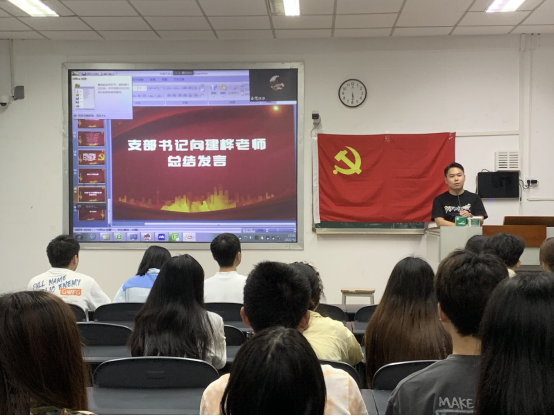 最后由支部书记向建桦老师作总结性发言,对转为预备党员的同学给予肯定和表示祝贺的同时,还强调各位同志在以后的学习生活中要更加刻苦、更加务实、更加自律,在广大学生中竖起一面旗帜。