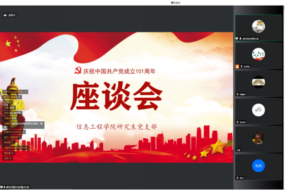 为庆祝中国共产党成立101周年,迎接党的二十大胜利召开,7月1日上午,必赢565net官网研究生党支部通过腾讯会议线上召开党员座谈会,会议由支部副书记廖双丽同志主持。