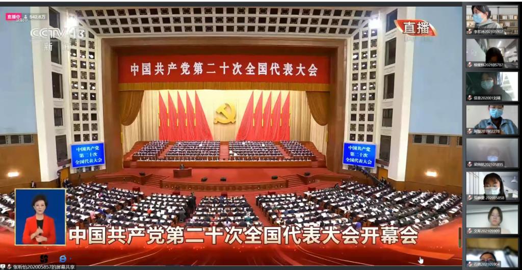 同心向党迎盛会,奋楫扬帆启新程。10月16日上午,必赢565net官网数据科学学生党支部组织支部全体同志在线上观看党的二十大开幕会直播,支部全体同志参与学习、收听、收看二十大开幕会盛况,深入了解、全面把握党的二十大的精神实质和丰富内涵。
