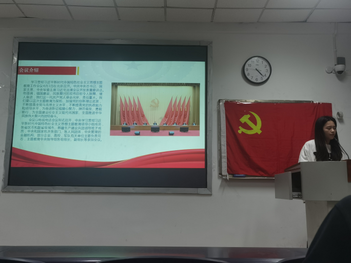 首先,秦思琪同志介绍了“学习贯彻习近平新时代中国特色社会主义思想主题教育工作会议”的基本内容。随后,秦思琪同志带领大家学习习近平总书记的重要讲话。习近平总书记强调:“广大党员应当学思想、见行动,树立正确的权力观、政绩观、事业观,增强责任感和使命感。同时也要查不足、找差距、明方向,接受政治体检,打扫政治灰尘,纠正行为偏差,解决思想不纯、组织不纯方面存在的突出问题,不断增强党的自我净化、自我完善、自我革新、自我提高能力,使我们党始终充满蓬勃生机和旺盛活力,始终成为中国特色社会主义事业的坚强领导核心”。