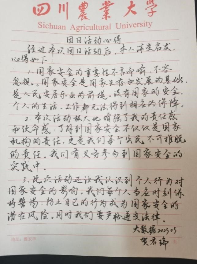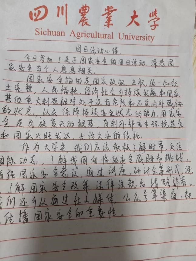 会后,每位同学都用心写下了自己的班团活动心得。他们将继续发扬团结奋斗的精神,为国家安全事业贡献自己的力量,让自己的青春在国家安全事业的征程中绽放出更加灿烂的光芒。