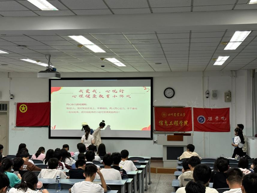 班团活动开展时恰值“5.25”心理健康教育活动月,为响应主题,活动穿插了生动有趣的心理小游戏,让同学们在游戏中提升相互扶持、共同前进的美好精神品质。