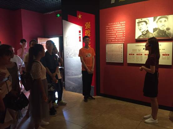 来到历史博物馆,讲解员首先阐述红军来到安顺场的原由,层层深入的讲解了红军当时面临的千难万险。为成功强渡大渡河,由17名勇士组成的小队用机枪和迫击炮压制敌人,乘机占领出口。讲解员又根据当时的行军路线,细细讲解了红军飞夺泸定桥的惊险时刻。在讲解到翻越夹金山的时候,讲解员重点介绍了当时的英雄人物——胡长保,他是警卫班的班长,当敌机飞到荥经县境内军委警卫营上空扫射轰炸的时候,他为保护毛泽东同志,腾空跃起把主席护在身下,但由于伤势过重,他永远合上了双眼。红军的英勇事迹感染了雅安人民,雅安人们也大力支持红军,也因此出现了很多雅安的优秀战士。青马成员在参观的同时,不禁感叹红军的英勇无畏,感谢着前辈们的辛苦付出,也更加珍惜今日得之不易的美好生活。