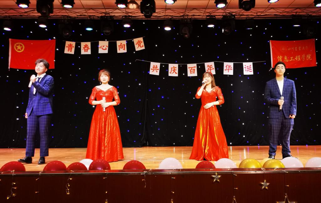 沙画表演《峥嵘岁月,百年征程》展示了中国共产党携手亿万中国同胞万众一心、众志成城,抗击非典、地震、洪灾、新冠等灾难所取得的伟大胜利,生动诠释了自强不息的中国力量。同学们深情地演唱歌曲《没有共产党就没有新中国》《我和我的祖国》《灯火里的中国》,则表达出对中国共产党由衷的赞美和敬仰,更抒发了青年学子对祖国母亲深深地依恋和热爱之情。