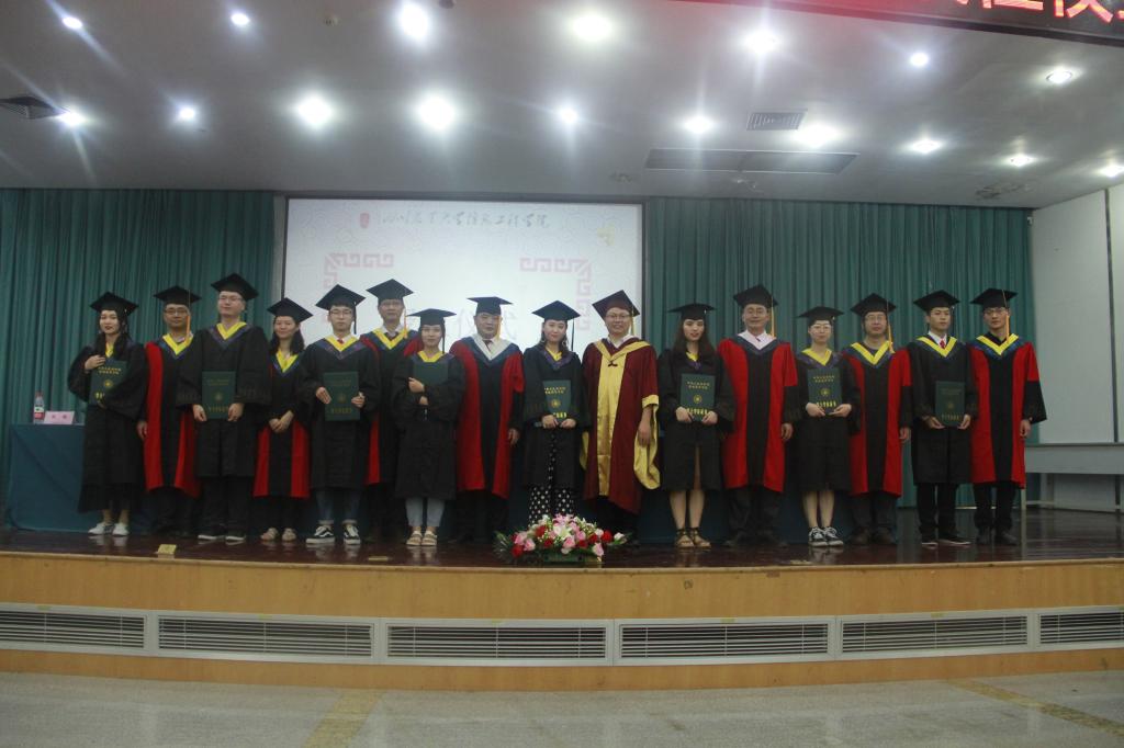 吴德副校长宣读校学位评定委员会关于授予学士学位的决定,与会领导在《相聚在桂花飘香的时节》的校歌声中为获得工学学士学位的451名本科毕业生举行“拨穗礼”。“来不及等待,来不及陶醉……”在《二十年后再相会》悠扬而热烈的旋律中,必赢565net官网2018届本科生毕业典礼暨授位仪式落下帷幕,学院领导再次表达了对全体毕业生的美好祝愿。典礼结束后,老师和同学们在十教楼前合影留念。
