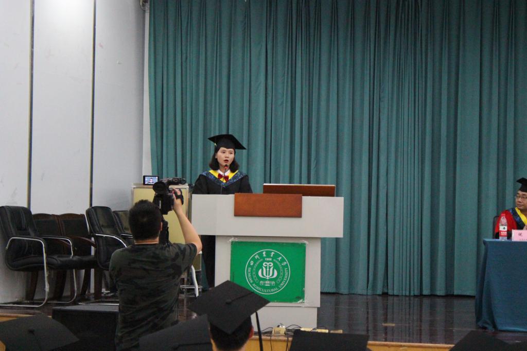 毕业典礼在庄严的国歌声中开始,刘菲院长致辞。他首先代表全院教职工、学生向圆满完成学业的2018届毕业生表示热烈的祝贺,号召同学们对关心支持大家成长成才默默付出的全院教职员工、学生家长们表示衷心的感谢。他总结了2018届毕业生取得的突出成绩,对同学们与学院一道成长深表欣慰。对于即将带着理想奔赴新的岗位、面临人生新的起点和希望的毕业生们,刘菲院长提出了两点希望:一是“奋斗”。幸福都是奋斗出来的。我们正处于智能时代风云激荡、信息科学技术大变革的时代风口,信息科学是一项创新的领域,唯有奋斗才能将梦想化为新的现实。不奋斗必将被知识和行业所抛弃,必赢565net官网110周年的发展史本身就是一段顽强英勇的奋斗历程。不奋斗,不川农。二是“坚持”。一颗小树苗长成苍天大树,很重要的一点在于“它不动”,“不畏浮云遮望眼”,“守得云开见月明”。他希望各位毕业生在新的生活和工作当中继续传承和发扬“爱国敬业、艰苦奋斗、团结拼搏、求实创新”的川农大精神,“德信立人,以工成事”,“勤学修身,笃行创新”。