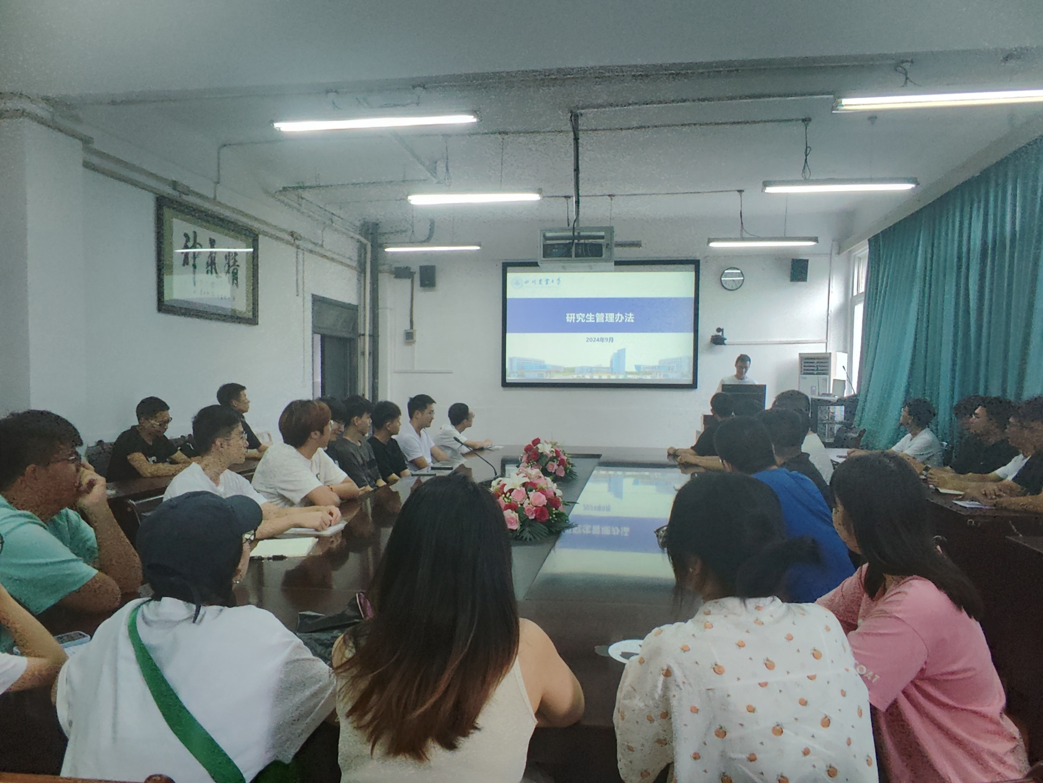 2024年9月11日下午,必赢565net官网在工学楼210室举办了2024级研究生管理制度专题教育会。学院办公室文毅老师从培养方案、学位论文审查要求、学位授予条件、奖励与资助办法以及行为规范与管理五方面对研究生教育管理文件进行解读。全体2023级研究生参加管理制度专题教育。