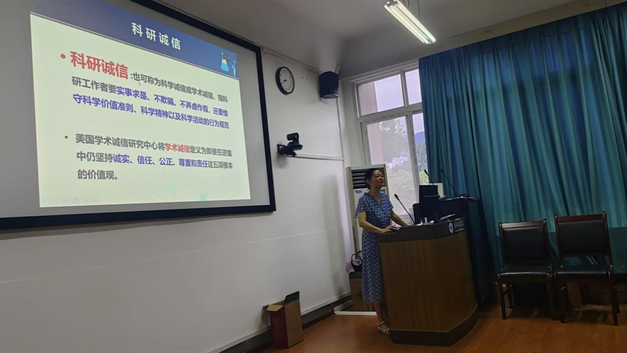 首先,院长穆炯在科研诚信教育环节中强调,科研诚信是学术界的基本原则之一,它要求研究人员确保数据的真实性和遵循科学精神。她指出成为成功的科研工作者需要具备扎实的科研基础、良好的职业道德以及坚韧的研究态度。此外,他还通过具体案例展示了学术不端行为的严重后果,如论文抄袭等问题,并呼吁学生们在科研过程中坚守诚信,避免抄袭和剽窃,保护知识产权,确保学术成果的真实性。她特别提到,近年来通过大数据分析技术已经大大增强了对学术不端行为的检测能力,警示大家必须时刻警惕。