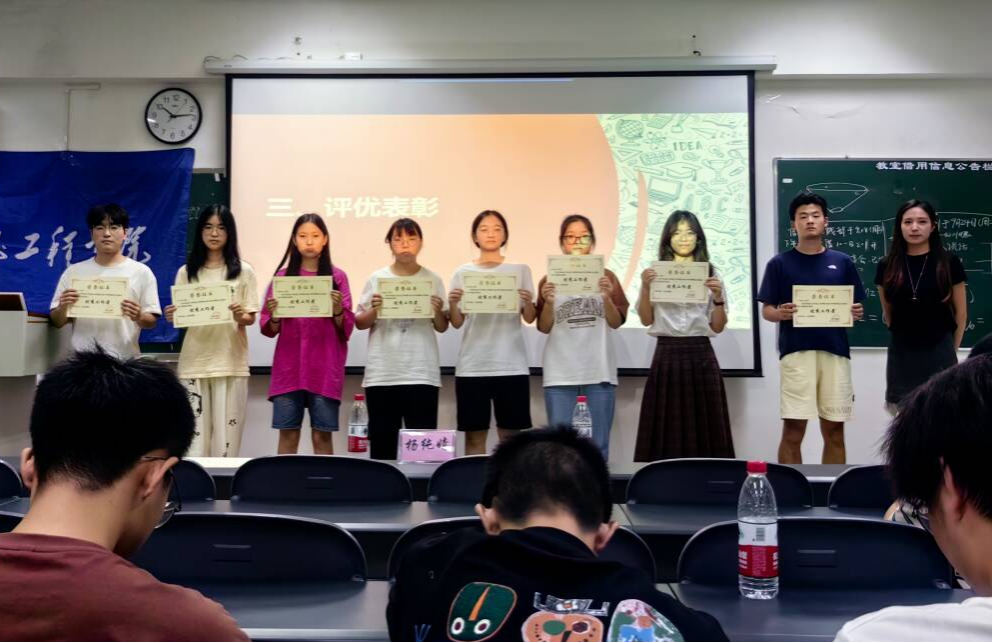 为激励更多同学崇德向善、见贤思齐,营造社会实践文化氛围,推动社会实践“人人可为,处处可为”深入人心,特邀校级优秀团队火相传实践团代表邓文蕊和白鸽传实践团代表王君南作经验分享。他们详细讲述了各自团队在暑期社会实践中的精彩瞬间与感人故事,深刻剖析了实践过程中遇到的挑战与困难,“不少团队实践点在偏远山区,环境条件有限,教育设备缺失,团队成员既要兼顾课程的高质量进行,还要克服艰苦环境,十分不容易,但好在最后通过团队成员的通力合作,圆满完成了支教实践。”两位代表的分享,不仅展现了信工学子的风采,更传递出积极向上的正能量,激励着在场的每一位同学。