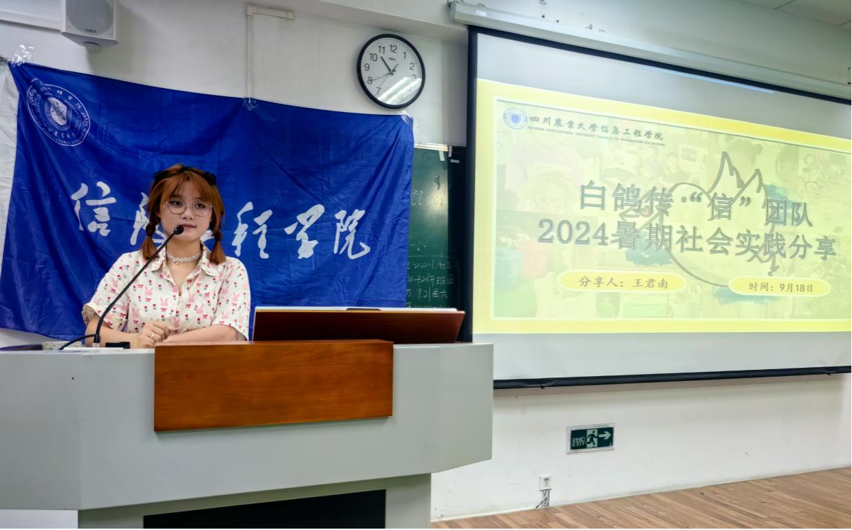 院团委实践部负责人唐玲慧同学介绍了2024年暑期社会实践的总体情况:学院共组织31支队伍,1000余名学子,覆盖四川、云南、山东等多省多地,辐射十万余人,获评校级优秀团队、社会实践优秀视频及图文,以及优秀公益科普课程等实践成果5项。