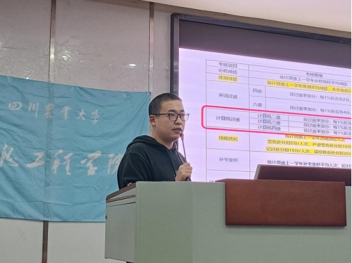 田尧夫老师向大家详细介绍了《学风建设温度计考评细则》,并强调了体测成绩、违纪情况在《细则》中的重要性。随后带领同学们共同学习了“关于进一步加强和改进学风建设”这一重要通知并简略介绍了学风督察计划。他重申班委以及学习部等学生组织是学风建设的重要力量,只有大家共同行动,在各个方面发力,将每个班的班级学风推动起来,学院的学风建设才能取得优异成绩。