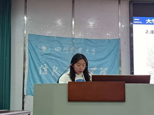 上学年国家奖学金荣誉获得者柳黛鲜学姐进行学习成长经验交流分享,她从目标制定、计划执行、课程成绩、科研工作、大学生活等多方面展开详细分享,为同学们树立了良好的学习榜样。“多多参加科研和竞赛”“优秀的习惯真的可以改变你的大学生活”,柳黛鲜同学一句句金玉良言无不激励着同学们以她为标杆,努力奋进。