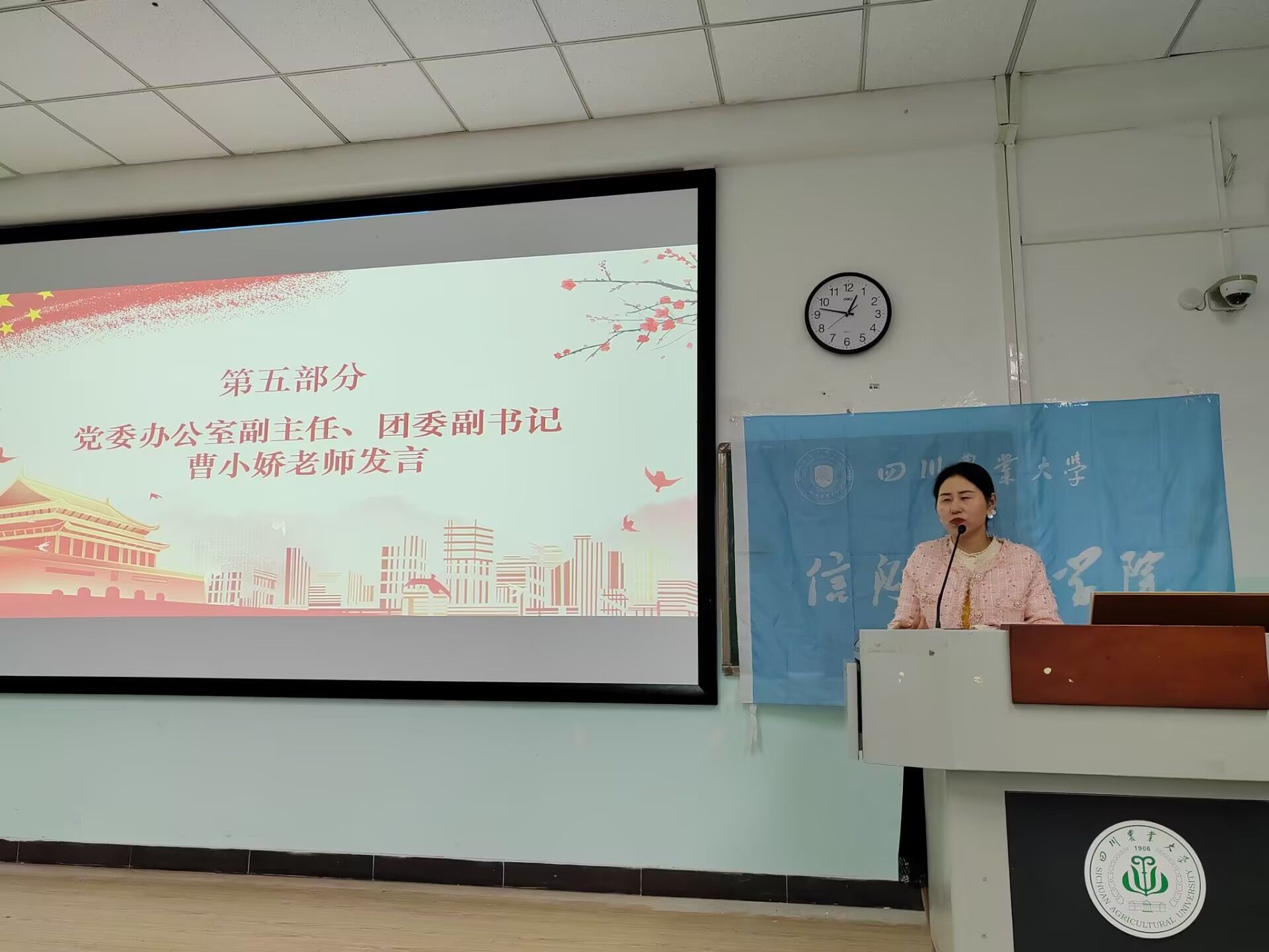 为推动学生干部队伍建设,帮助2024级新成员进一步加深对团学组织和团学工作的理解和认识,11月15日中午,必赢565net官网第八期团校开班仪式暨第一次理论学习在10-A303举行。党委办公室副主任兼团委副书记曹小娇老师以及第十一届主席团成员受邀出席开班仪式,第八期团校全体学员参加。