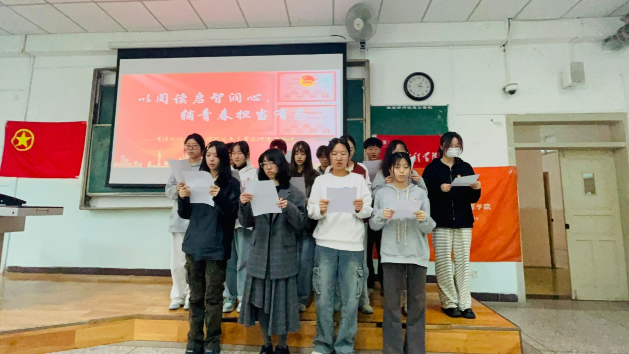 支部成员手捧经典,激昂吟诵间,让文字化作穿越时空的回响,在声声顿挫中传递信仰之光,于墨香流转里触摸文化血脉的奔涌。