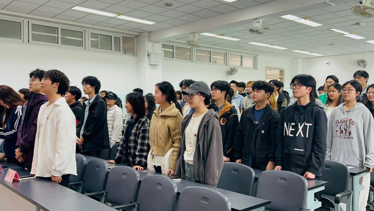 活动在激昂的共青团团歌中拉开帷幕。全体成员齐声高唱,以铿锵旋律凝聚青春信仰。在“深悟两会领航向”环节,通过专题视频学习与第二课堂成果展示,同学们系统回顾了两会提出的重大政策与民生议题。随后的知识竞答以赛促学,现场气氛热烈,展现出青年学子对国家发展的深切关注。