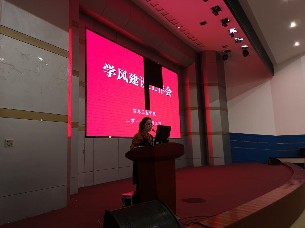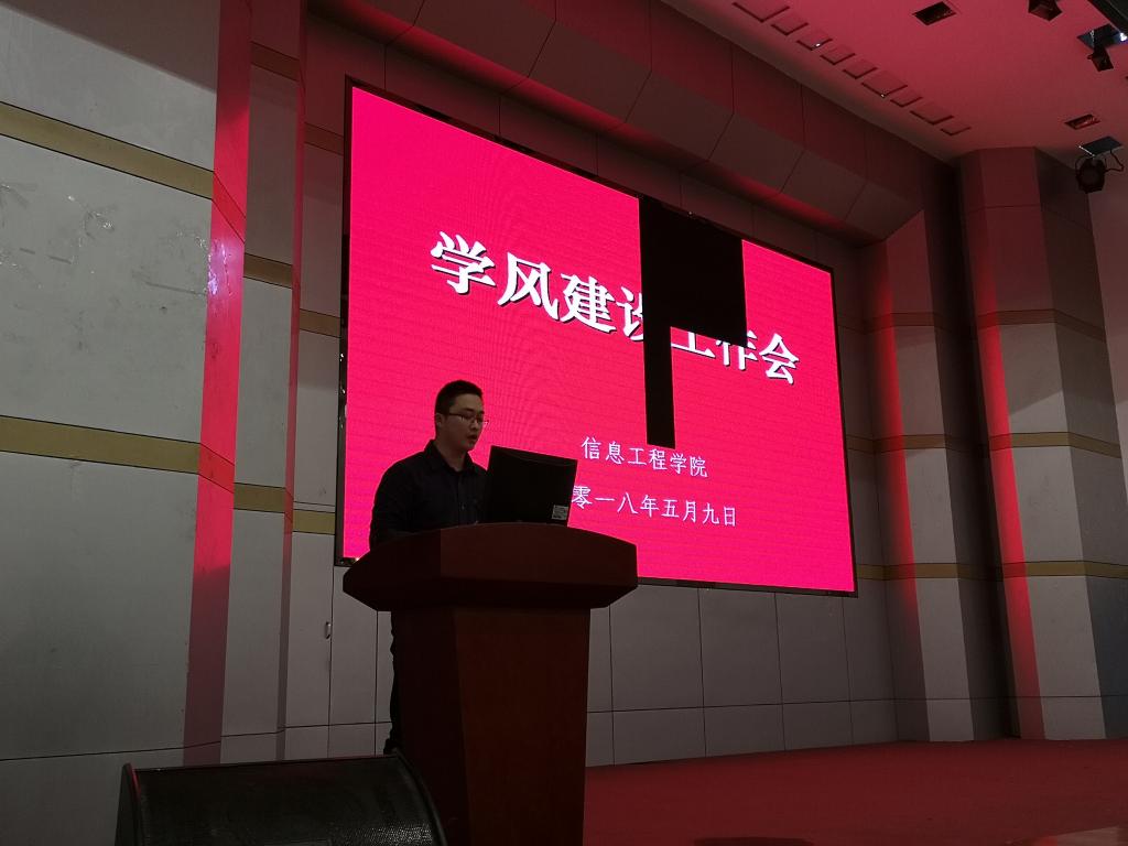 会上,邓老师对前期开展的学风建设调研结果作了汇报。报告总结分析了我院学风现状及其影响因素,并围绕“学风建设”就思想教育、示范带动、课堂延伸和制度建设等工作作了总体要求。黄老师对《必赢565net官网学风建设实施办法》(试行)进行了通报和解读,并就学年学风建设相关工作进行了安排。他强调,学风建设是一个系统工程,为了营造良好的学习氛围,学院将整合多方力量,建立长效帮扶机制;通过搭“习惯养成平台”,强化日常管理,打造“四有三无”课堂,争创“四有”好班级;通过搭“双创育人平台”,依托学术讲座、项目研发工作室、学科竞赛,助推学生专业发展;通过搭“合作交流平台”,探索校地合作、校企合作、校校合作育人模式,拓展学生眼界视野。