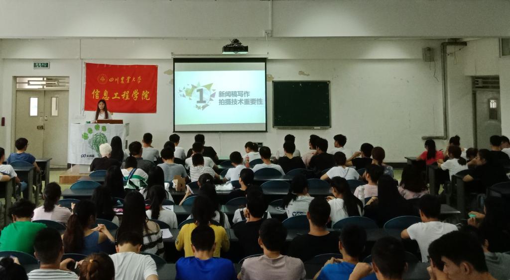 在技能培训环节,首先,记者团副团长石磊同学为大家进行了系统的新闻稿写作技能培训。他在深入研究了大家在暑期社会实践过程中会涉及到的新闻稿类型之后,确定了从消息类新闻稿、通讯稿以及组图稿三个方面进行本次写作技巧的专题培训。讲解的同时,他根据之前收集、整理和总结了近段时间各大新闻网站发表的优秀新闻稿,辅以各类新闻稿的实例,结合自己多年从事新闻稿写作的经验,形象生动地向参加培训的同学讲述了完成一篇优秀的新闻稿的“艰险历程”。另外,为了能够让更多的团队能够有机会成功发表新闻稿,他还特地向大家简单介绍了一些他自己总结的写作小技巧,在场的同学们都表示收获颇多。