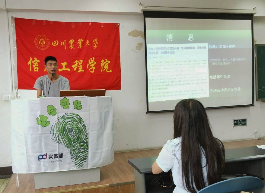 培训会伊始,余洁以趣味问答的方式,成功引起同学们对培训活动的浓烈兴趣,着重强调了新闻稿和图片拍摄质量的重要性,就今年学校对社会实践新闻稿的最新要求和投稿相关事宜,为在场的所有同学进行了细致地分析讲解。她特别强调,社会实践过程中所有同学务必要注意安全问题,只有保证自己的安全,才能够做好社会实践活动。