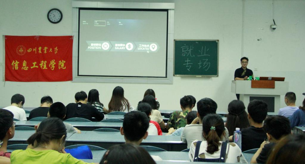 会上,中移物联网有限公司成都信息技术中心嵌入式开发岗位的胡昌首先进行分享,作为IT就业的代表,胡昌以专业的角度介绍了游戏开发岗和嵌入式开发岗所需要的技术要求,以自己在大学生活中对专业知识技能的钻研鼓励同学们好好学习专业知识。