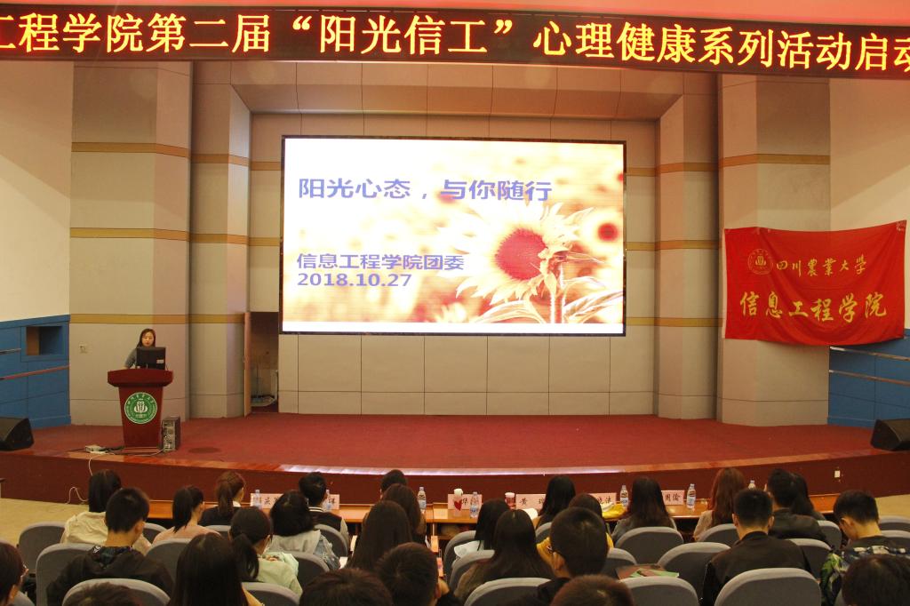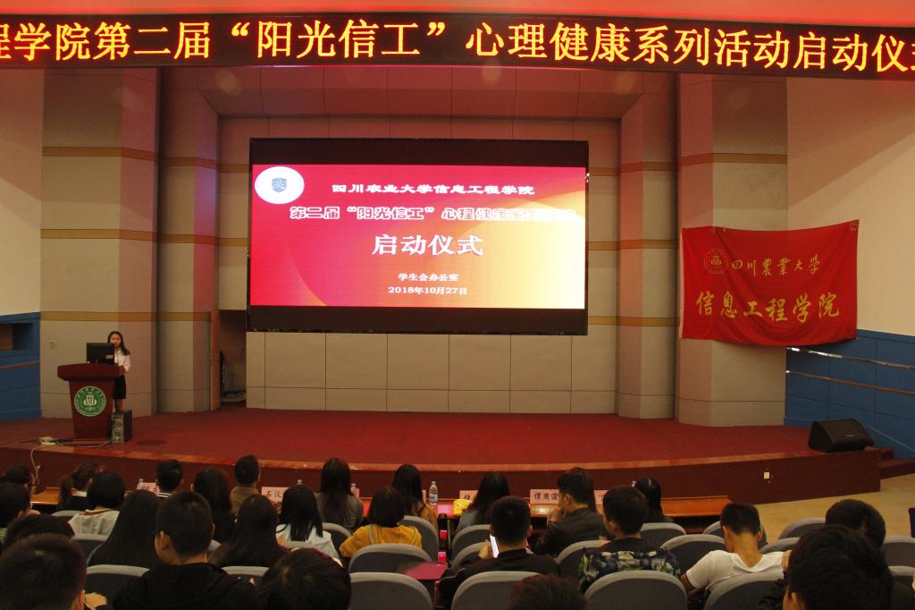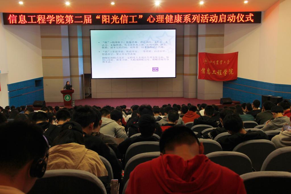 10月27日下午,由必赢565net官网主办,必赢565net官网学生会办公室承办的第二届“阳光信工”心理健康系列活动启动仪式暨“以信聆心”心理健康教育讲座于逸夫楼小礼堂成功举行。这标志着必赢565net官网第二届“阳光信工”心理健康系列活动正式拉开帷幕。学院团委辅导员老师、团委学生会主要学生干部及2018级全体新生参加了此次活动。