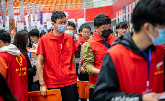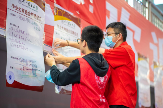 双选会当天,工作人员在8点准时到达体育馆,各自分工、有条不紊地开展工作,来校企业在外场候场志愿者的引导下有序进入学院分会场,在内场候场员的帮助下完成企业信息的添加、宣传报的张贴等工作。