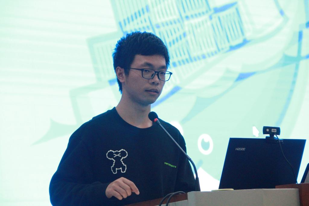会议伊始,来自wingstudio工作室的黄浩哲和芶玉涵同学分别向大家介绍了web前端开发和传统后端开发知识。黄浩哲同学通过“机你太美”游戏与大家互动,带动全场氛围;芶玉涵同学举例了java语言,让同学们对wingstudio工作室产生了浓厚的兴趣。紧接着,由文蔡灿同学从Golang语言的发展、特点、应用和现状等多方面进行讲解,鼓励同学们大胆尝试与创新。WingStudio工作室作为学院最成熟的工作室之一,研究内容始终在热点前沿,在创新创业、科研竞赛等方面获得了很多重量级奖项。随后,大数据实验室负责人林彬同学围绕人工智能与虚拟现实交互进行讲解,由猫狗分类问题引出图像的语义分割、分类和迁移问题,讲述了深度学习的概念以及弱人工智能的发展历程。林彬同学还通过真人模拟的方式为大家呈现了人工智能为生活带来的便利,使在场观众印象深刻。四位同学精心准备的形象生动的知识盛宴,极大调动了同学们对专业技术学习的兴趣和热情。