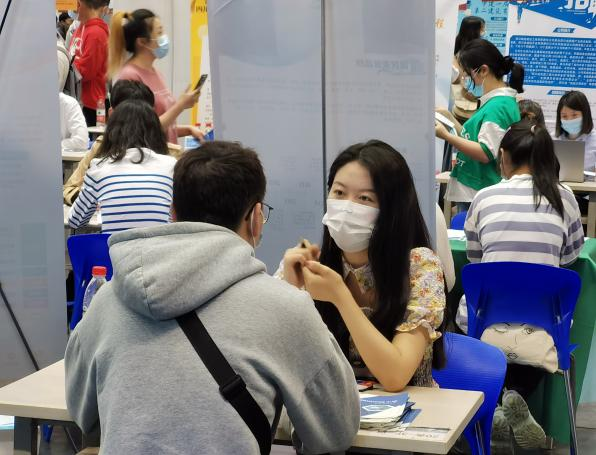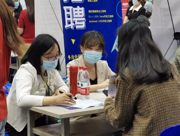 双选会现场,2022届毕业生拿着精心制作的简历,与自己心仪企业的HR针对个人情况与岗位详情等内容进行积极交流。值得注意的是,许多大二大三的在校生也来到了双选会现场,询问企业关于对技术性实习生的具体需求,希望在毕业前丰富自己的技术经验,提升自己的职场社交能力,主动适应职场环境,完善职业规划。