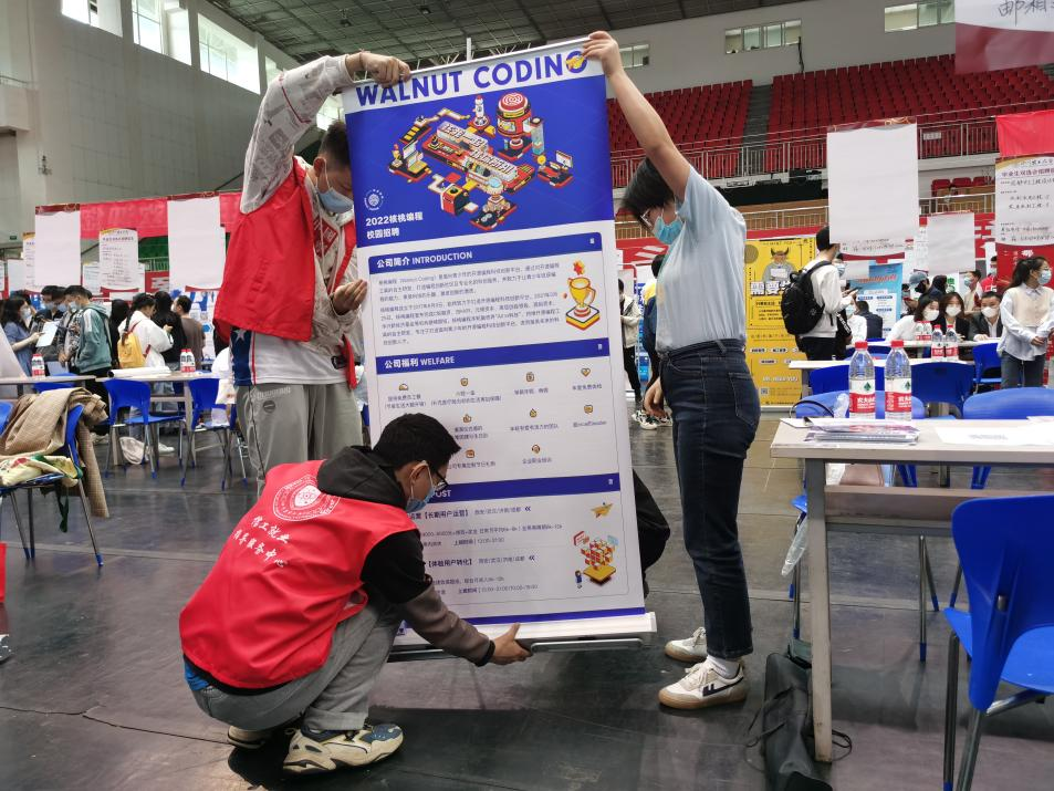 双选会开展数日前,学院就业指导中心便确认了到院招聘企业的名单。4月24日20余名志愿者齐心协力完成了所有参会企业的海报填写、座椅摆放以及分会场整体设计和布置。