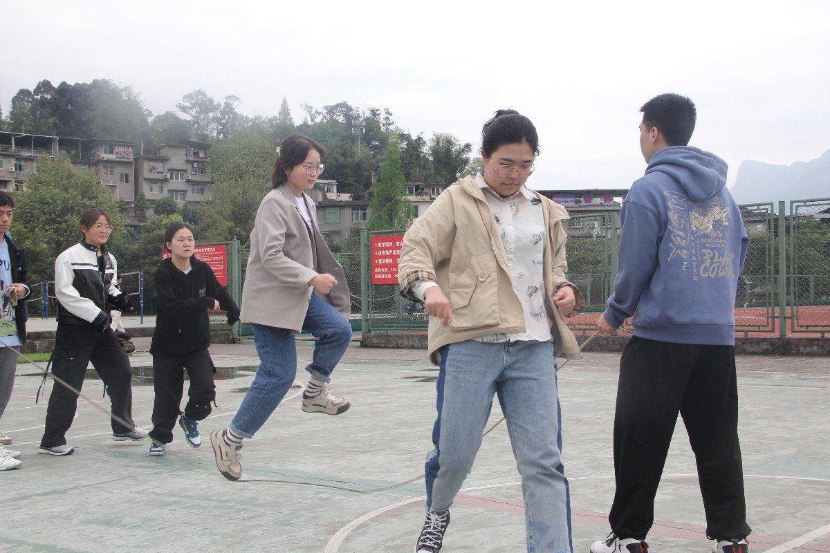 在4月3日中午的跳绳训练中,参赛队员们练习挥舞绳子及跳绳的节奏,运动员们互相配合,形成了操场的那最亮的风景线。从最开始的起步凌乱到最后齐声喊数字、完美起跳落地,他们挥洒着汗水,也展现了信工人的青春风采。