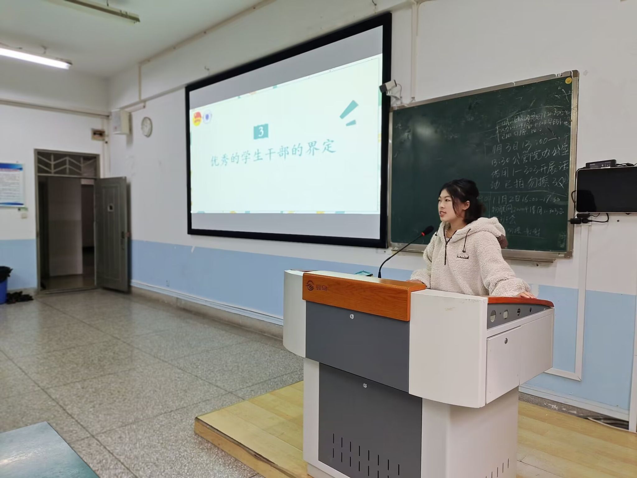 会议的最后,庞玲分享了优秀学生干部案例,分享了自身从学生工作中所获所得,引导学员们认识到学生工作方式的丰富多样性,希望学员们能在社会实践、志愿服务、部门工作等学生工作中积累知识,锻炼能力,为未来多样的道路奠定扎实基础。