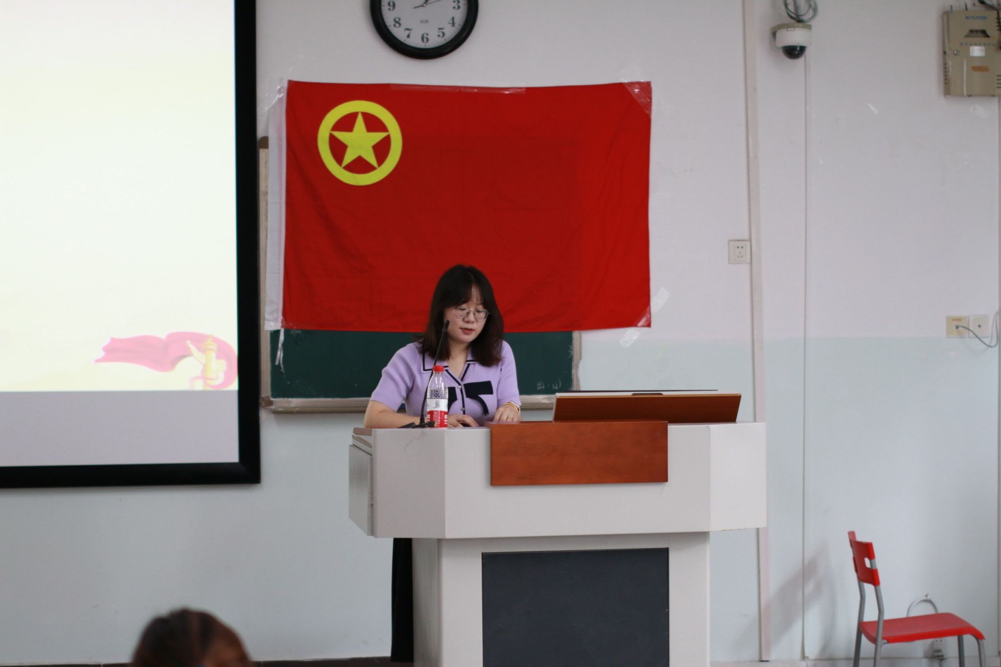 为了让学生组织骨干明确培训目的和意义,此次开班仪式邀请到第六期青马班优秀学员代表陈思源进行了学习分享。“在上一期的学习中,将理论知识与实践相结合,让我的政治理论水平、创新能力、实践能力等有了较大提升,更深刻地认识和了解社会现状。希望新一期青马班成员树立崇高的马克思主义信仰,肩负起重要的历史使命。”陈思源结合亲身经历、自身成长、自我体会进行分享,并鼓励大家珍惜学习机会,锤炼自身品格。