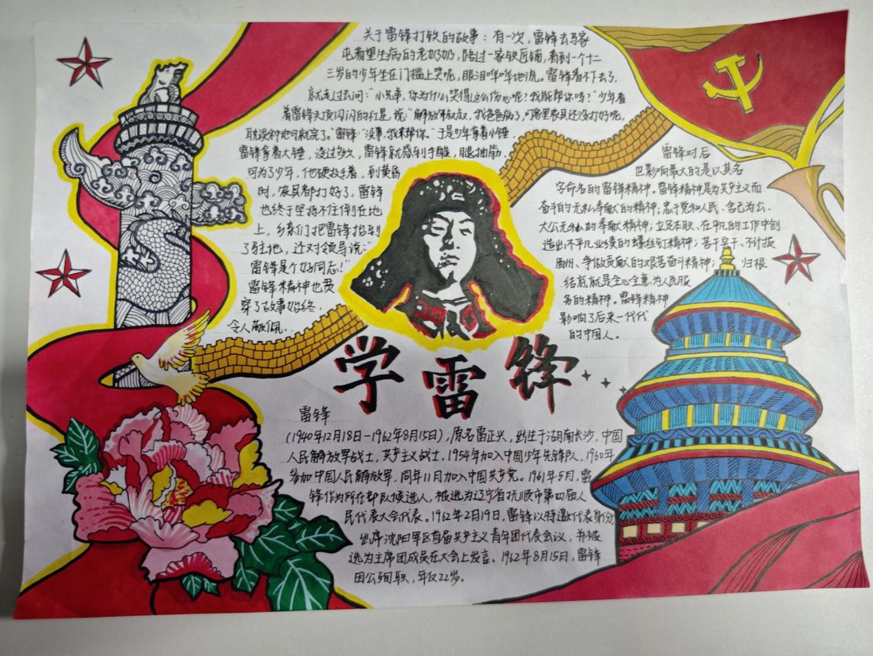 此次手抄报活动顺利展开,同学们踊跃参与,通过丰富多彩、图文并茂的形式,生动传达学雷锋、讲文明等宣传内容。手抄报作品中融入了对雷锋的崇敬和怀念之情,展现了对雷锋精神的推崇与敬仰之感。
