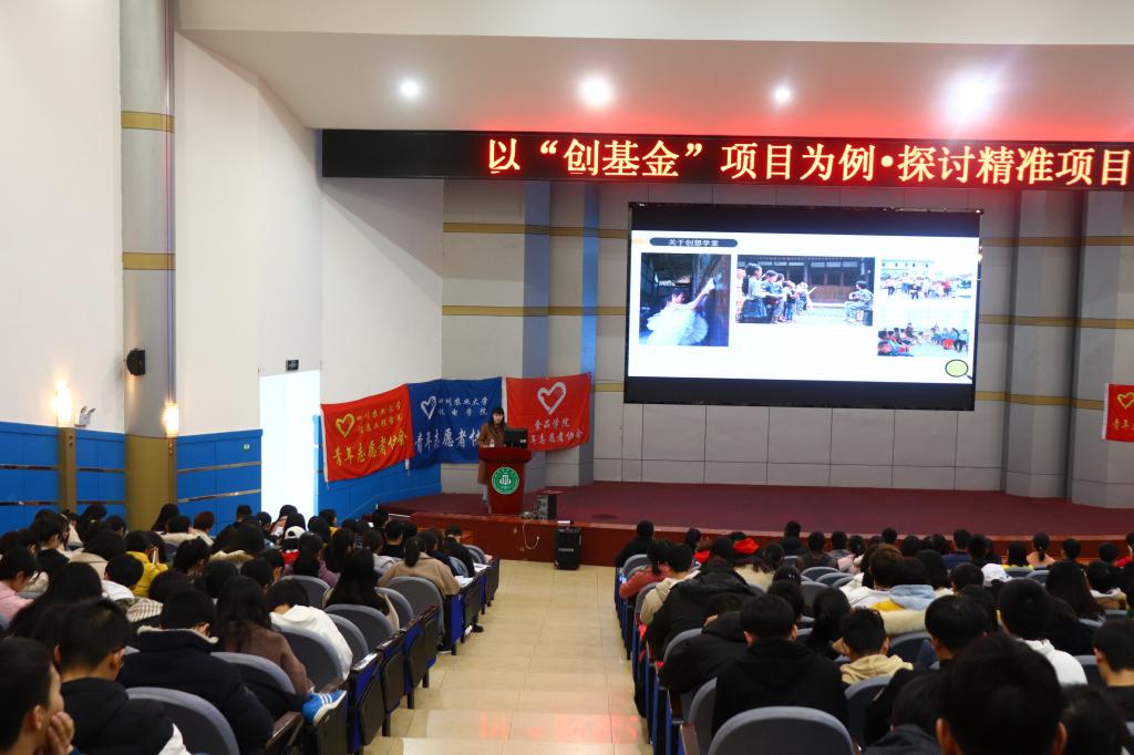 为提高必赢565net官网志愿者整体素质和志愿者服务质量,从而更好地开展志愿服务活动,3月9日16点20分,必赢565net官网、机电学院、食品学院、生命科学学院、人文学院、水利水电学院于逸夫楼联合开展了“以‘创基金’项目为例·探讨精准项目设计”主题志愿者培训活动,并邀请了普乐同行青年公益发展中心的罗敏老师作为主讲人,向在座的四百余位同学讲授关于志愿者活动的心得。