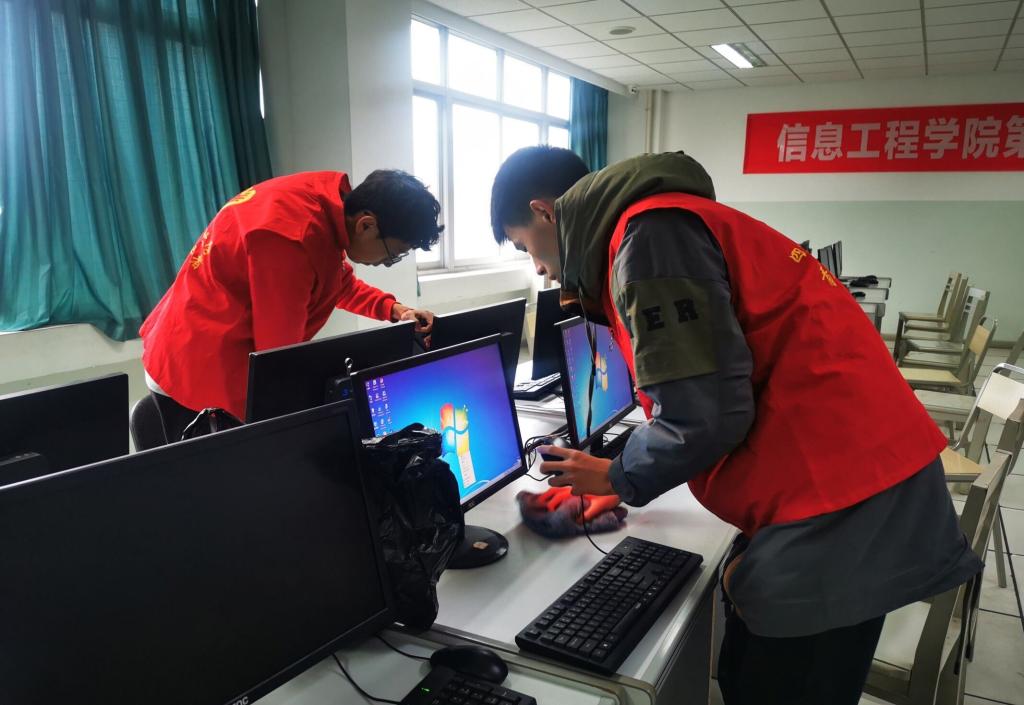 为提高青年学子的环保意识,创建洁净舒适的实验环境。2020年11月25日中午,信工院团委志愿服务部带领计算机201903班的8名同学在十教B区电脑实验教室开展了电脑清洁志愿活动。