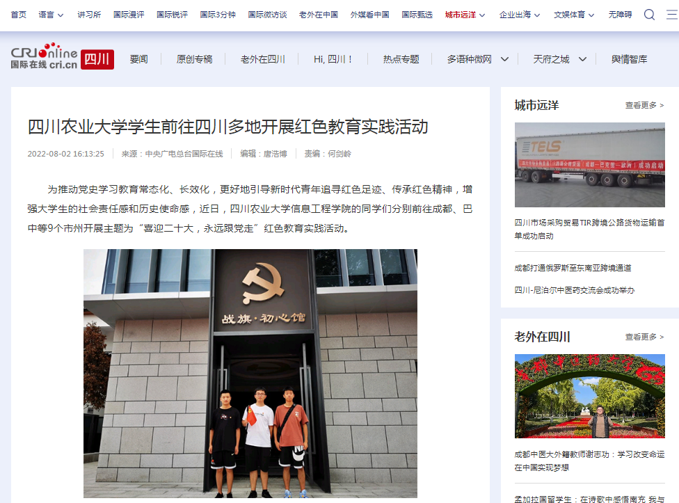 中国大学生网讯(通讯员 王镓驹)为传承红色基因,践行大学生使命担当,同时推动红色历史传播走深走实。7月20日,四川... Read More